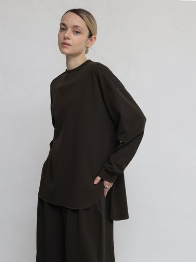 落ち感ある素材感で、よりスタイルがきれいに見える一枚。