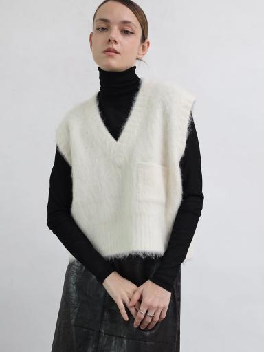 ニットベストは短めの丈なのでスカート合わせもしやすいですよ☺️