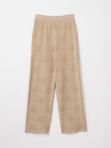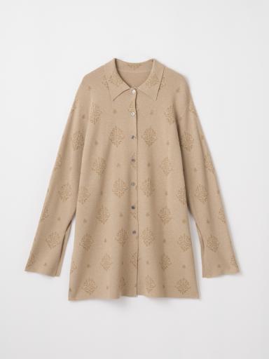 オリエンタル柄のニットシャツとニットパンツのセットアップを