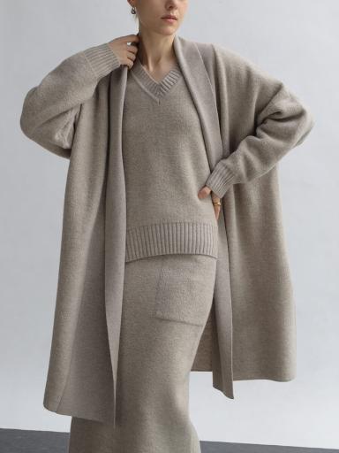 やわらかなロングカーデを重ねて上品に。