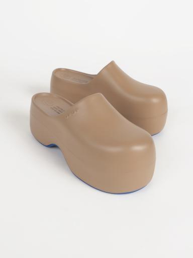ボリュームのあるパンツに合わせて、足元は厚底シューズで重心をプラスし、全体のバランスを整えました◎