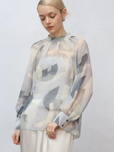 やわらかな柄トップスが、白の緊張感をほどよく中和。