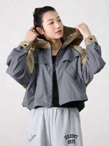 配色切替のパーカーは羽織るだけで