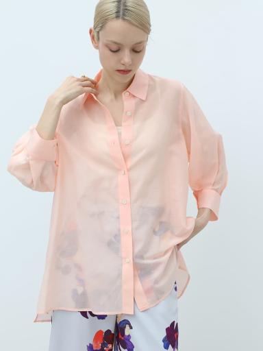 ほんのりシアーなシャツに、ブラウンスカートを重ねた抜け感コーデ♩
