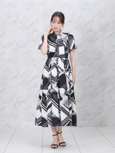 中のワンピースは腰位置が高い切り替えで見た目すっきりするのに、