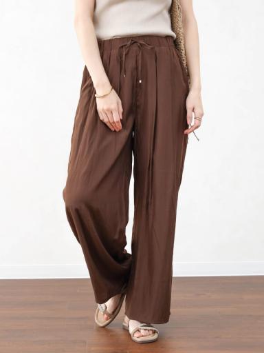ワイドパンツは、落ち感のある素材で広がりすぎず、